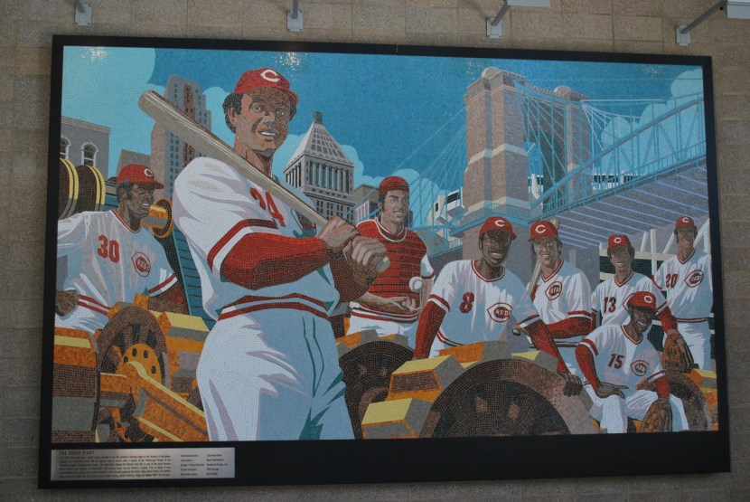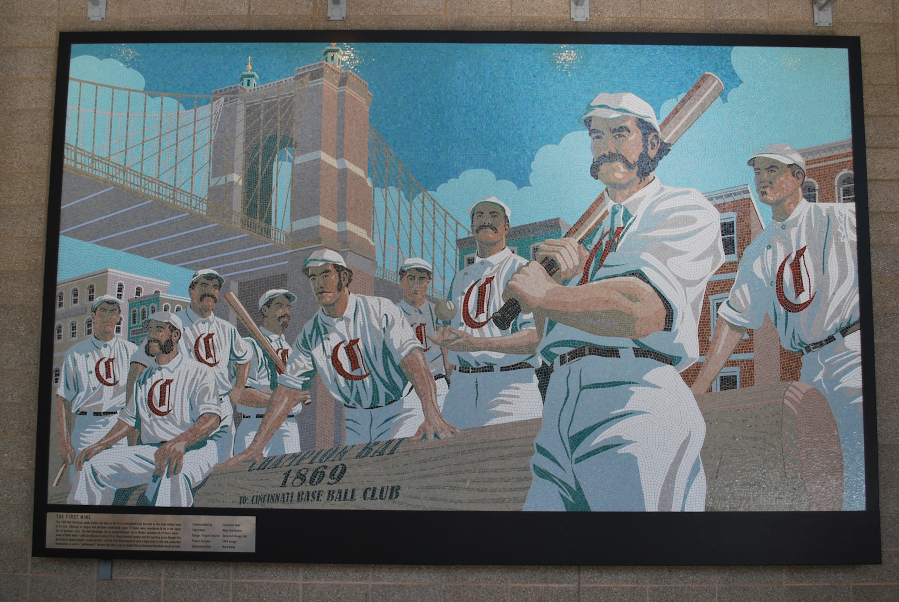 Barry and I then went down to the field level and headed to our seats. Inside the home plate entrance they have two nice pieces of artwork that are made of tiles. The first is of the “First Nine”, Cincinnati had the first professional team in 1869, and this piece commemorates that team.