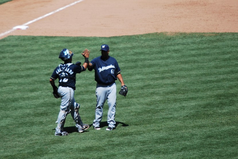 The solo home run is all the Reds could muster in the ninth inning. Final Score: Brewers 8 – Reds 4. Livan Hernandez, who the Brewers recently acquired, pitched the ninth inning and got a high five from Maldonado after retiring the last batter of the game.