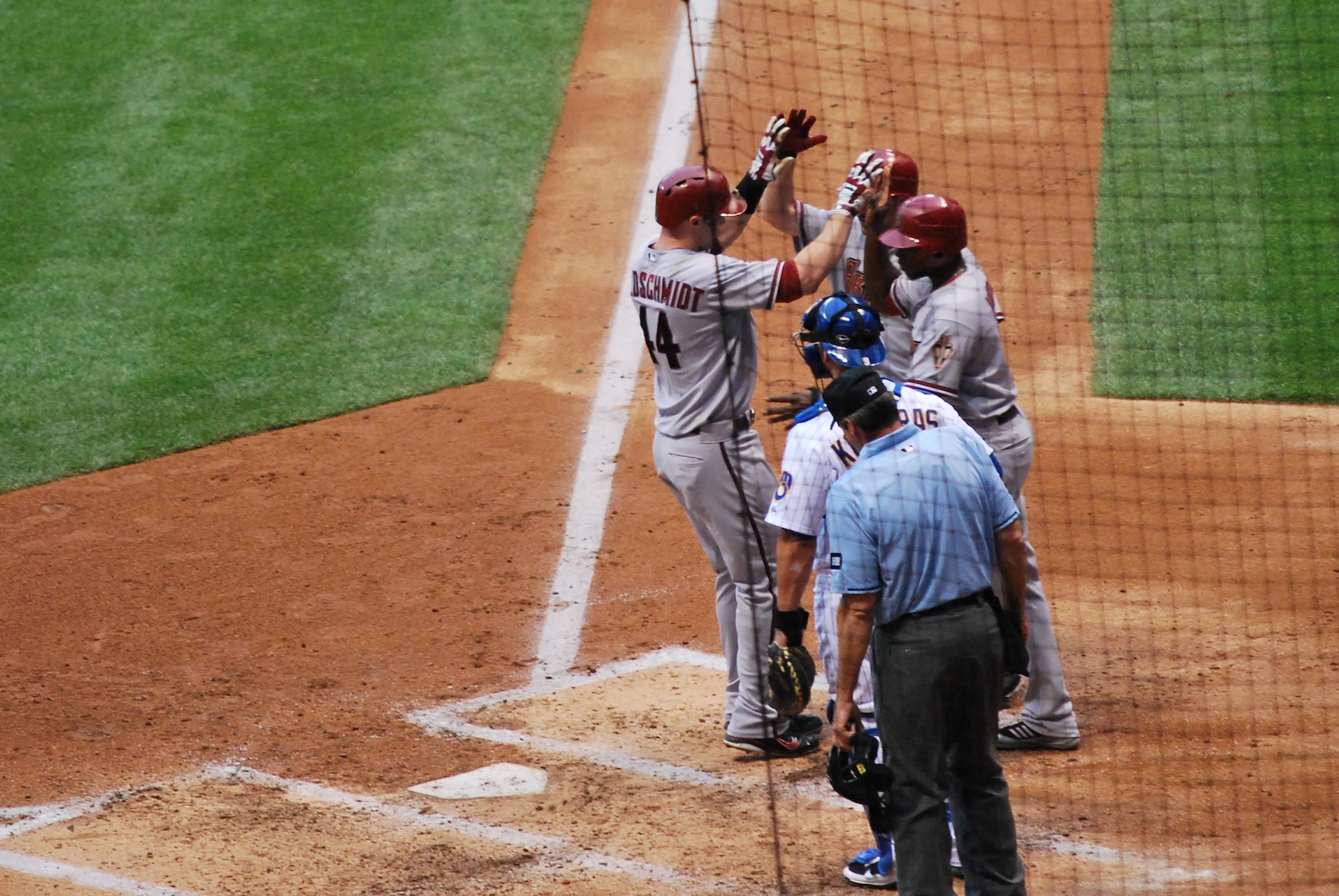The Diamondbacks tied it in the second and then erupted for five runs in the third inning to take a commanding 6-1 lead. The last three runs of the third came on a three-run home run off the bat of Paul Goldschmidt. He got some love at home plate from the guys he drove in.