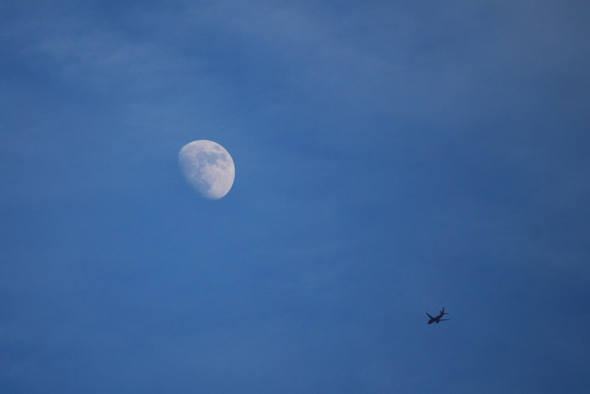 At one point I saw an airplane flying dangerously close to the waxing-gibbous moon and I thought it was picture-worthy. What was the pilot thinking!?!?