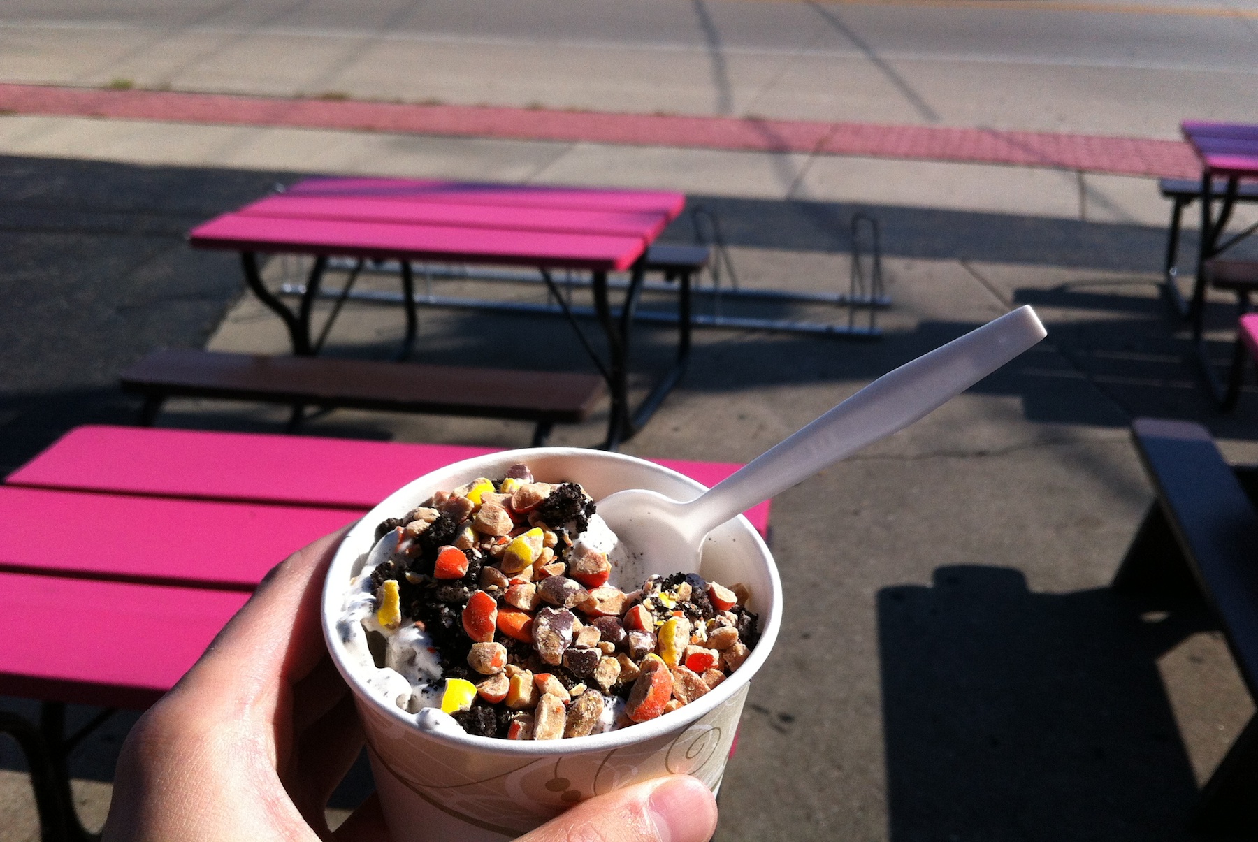 Dustin got home from golfing and we hit up Jimmy Johns, and then Frostie Freeze. They’re right next to each other on Madison Avenue in Fort Atkinson, so it works out pretty well. I mentioned Frostie Freeze in a previous post, so you can refer to that for me details. It’s a nice ice cream place and I got an Oreo-Reese’s Pieces Candy Freeze. As always, it was superb.