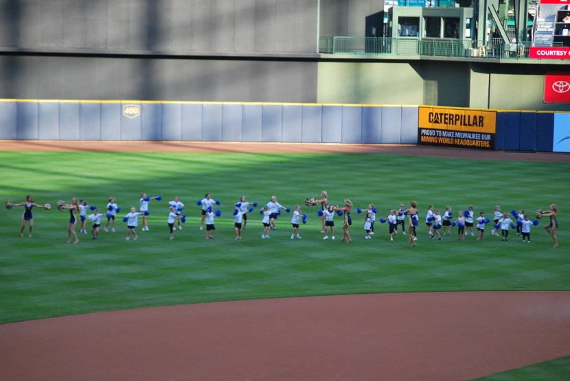 After walking around for a bit we went to our seats and waited for the game to start. They had the Junior Diamond Dancers perform in the outfield with some of the actual Diamond Dancers. I know I wouldn’t be able to remember a routine, so this isn’t a jab at the little tikes. It’s cute to see some of them watch the Diamond Dancers to see what move is next then duplicate it to the best of their abilities, all while trying to catch up.