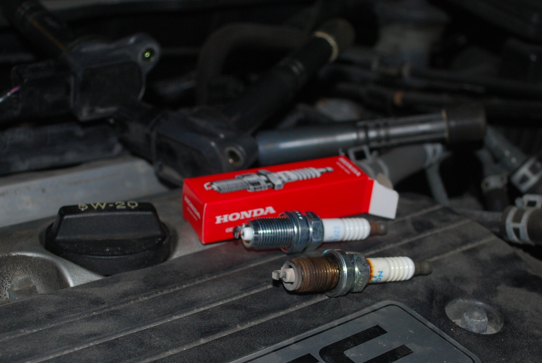 On Monday I actually got something done (besides going to a Brewers game). I had a tune-up before the season started at the Honda Service Center in Madison, and since my car was nearing 90,000 miles they said it was a good time to change my spark plugs. They wanted $60 just for the labor, so I passed. I bought the spark plugs myself and planned on doing it later. Seeing as my car is now over 95,000 miles I figured I shouldn’t wait any longer. I had replaced them on my ’93 Grand Am back in 2005, and the Accord is a lot different. For the car it involves using an socket extension that can reach down into the engine to access the spark plug. I watched a short tutorial online and didn’t have too many problems. I’ll let you guess which one got replaced…