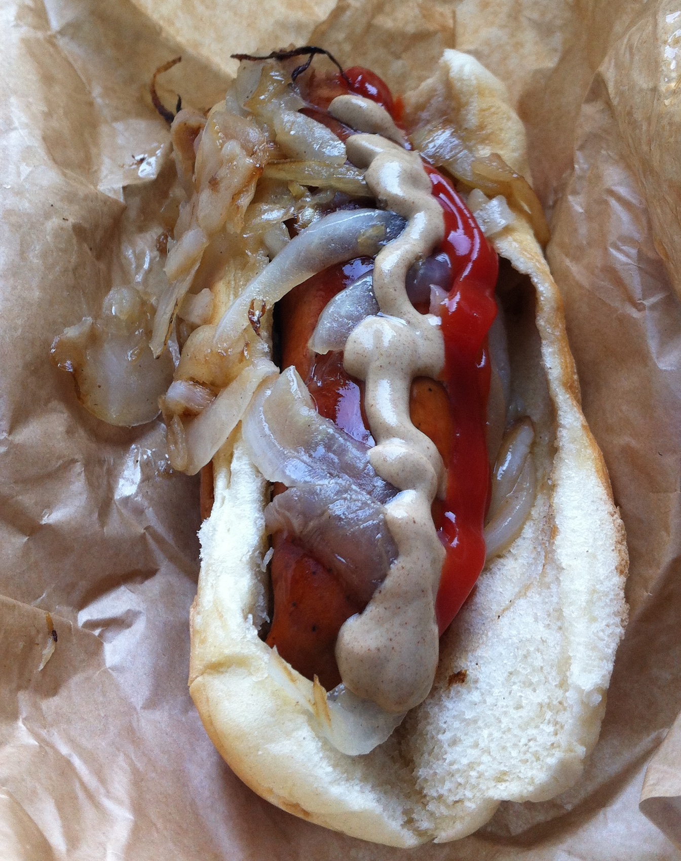 I went back up to the loge level and after saying Hi to the Ice Man I went to the concession stand behind section 214. I exchanged my designated driver voucher for a free soda (I got lemonade) and also got a Polish sausage with caramelized onions. I’ve had 22 Polishes since April 6th and I don’t think I’m getting sick of them.