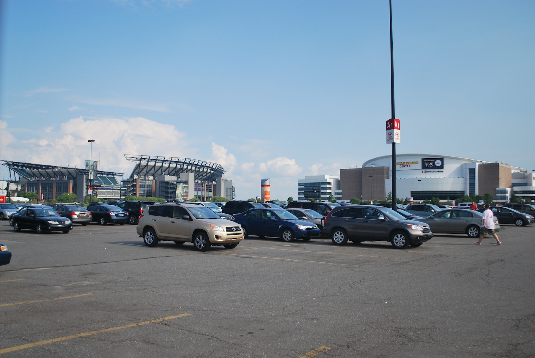 Needless to say there are plenty of parking spaces to go around. You can see Citizens Bank Park (and the other arenas) right after you emerge from the underground subway stop. As I got closer to the Phillies’ home I got a picture of the park.