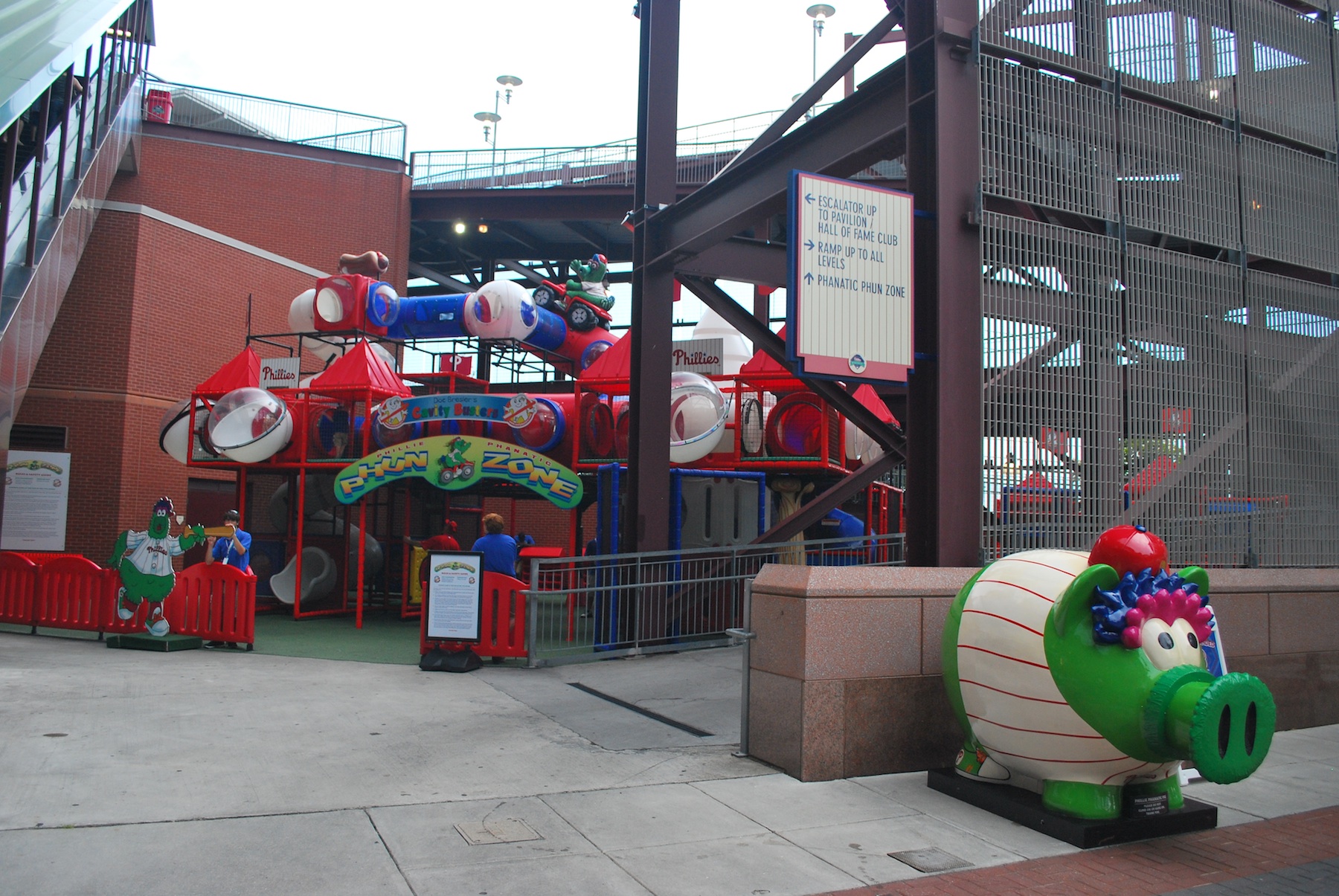 I got my ticket and was inside the park at 5:45. Right inside the first base entrance is the Phanatic Phun Zone. The Phillies mascot is the Philly Phanatic, and the Phillies like to use the P-H whenever they can. Very punny, Philadelphia.