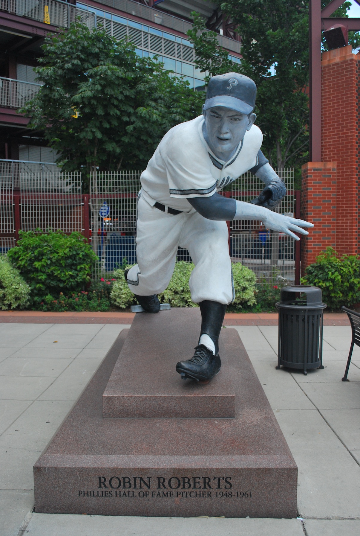 I went back to the first base side ticket windows and waited for the visiting team tickets to arrive. In the meantime I got a picture of the Robin Roberts statue. He pitched for the Phillies from 1948-1961 and had stints with the Baltimore Orioles, Houston Astros, and the Chicago Cubs. He held the record for most home runs surrendered until Jamie Moyer surpassed it just recently. Despite the home runs surrendered record he was a great pitcher, a 7-time All-Star and was elected to the Hall of Fame in 1976.