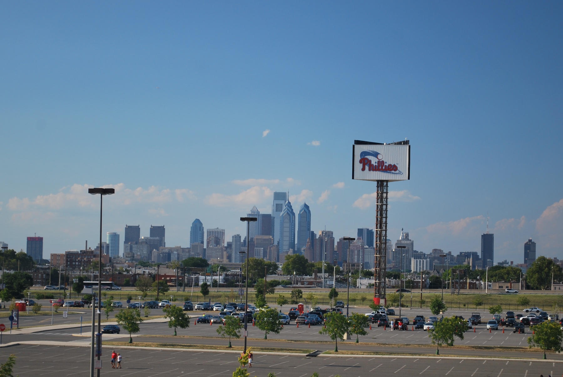The concourse of the second level (where I’m facing in the picture above) provides a nice view of downtown Philadelphia: