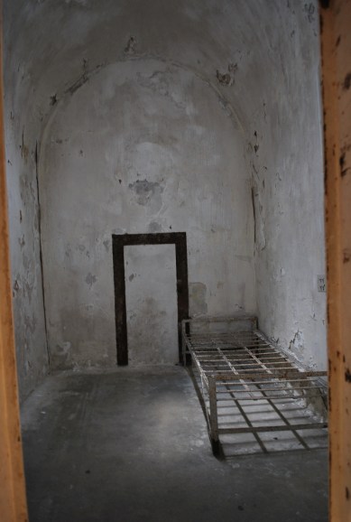 Do you see the little open cavities on each side of the cell blocks? Those were exercise areas, and were connected to each cell. Here’s one of the cells: