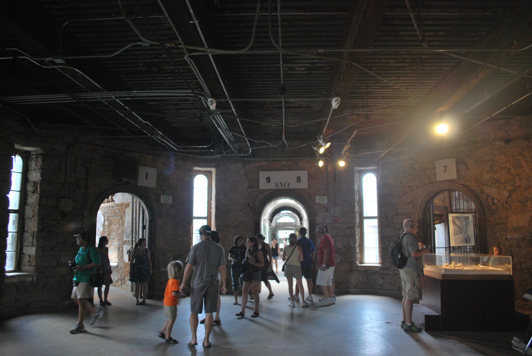 The solitary confinement techniques and the Pennsylvania system broke down, leading the penitentiary transformation into a more traditional prison. This meant more prisoners could be housed at the facility, which helped cut costs as well. The original design called for seven cellblocks one story high but after the third cellblock they modified the design and the remaining cellblocks were built as two-story structures. They let you walk up the stairs in cellblock 7, and it provides for a nice picture.