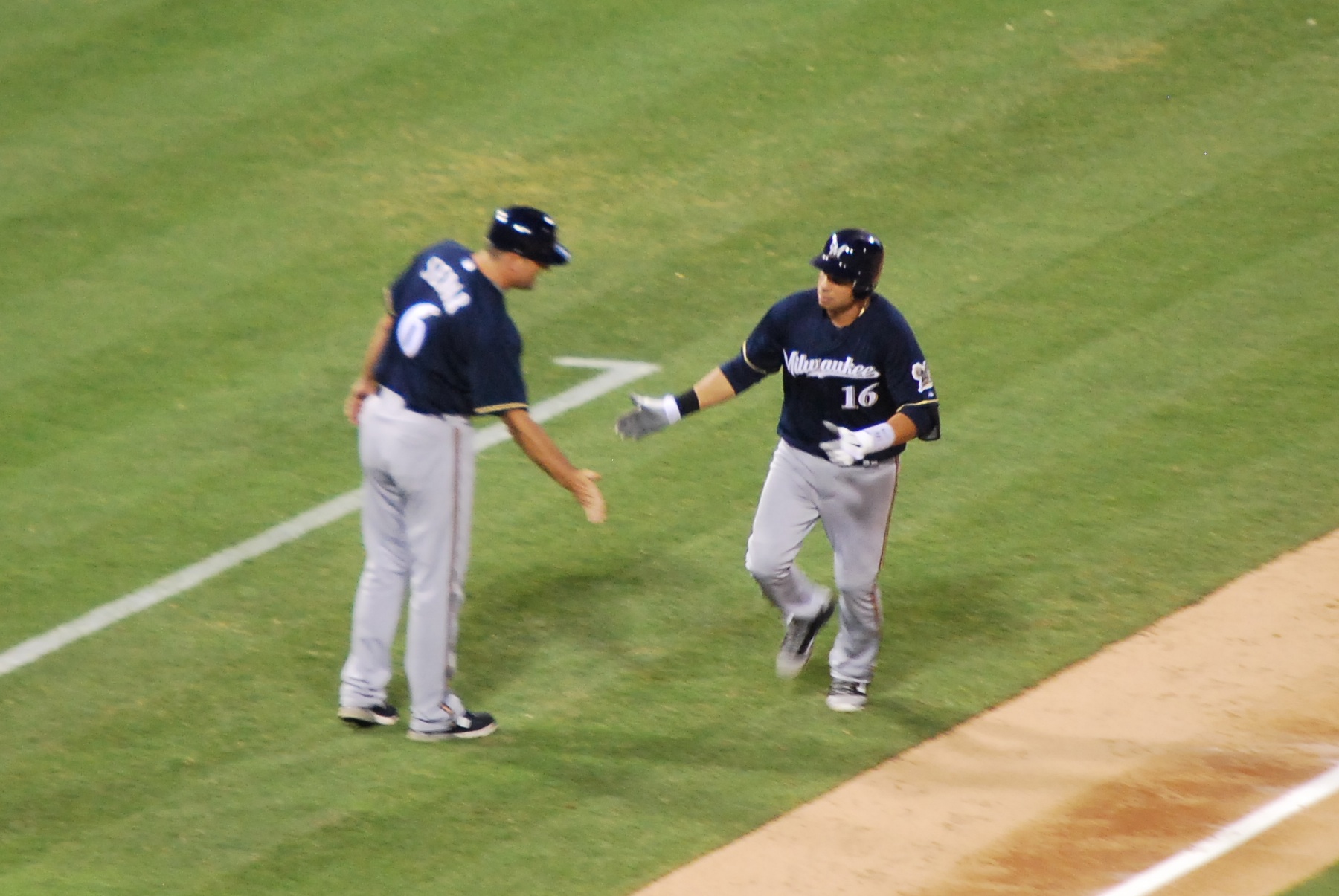 The Brewers weren’t done scoring and in the 8th inning they hit two more home runs, a solo shot from Go-Go and a 2-run shot from Ram-Ram. Here’s Ramirez and Ed Sedar high-fiving after Ramirez rounded third: