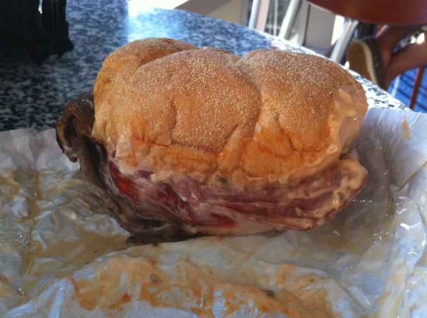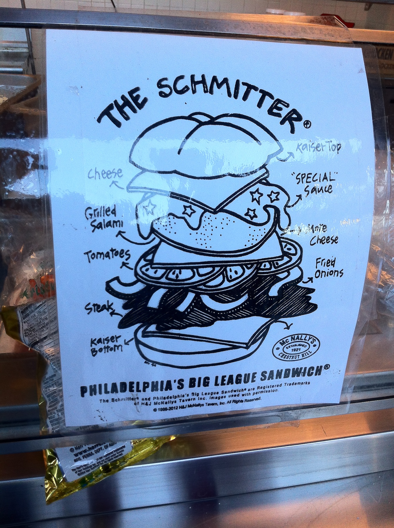 Someone had tweeted that I need to get a Schmitter, which I found out is NOT named after Phillies great Mike Schmidt. The stand thankfully had a diagram so I knew what I was about to consume. If you can’t read the diagram: it consists of steak, grilled salami, tomatoes, cheese, fried onions, more cheese, and “special sauce”, all on a Kaiser roll.