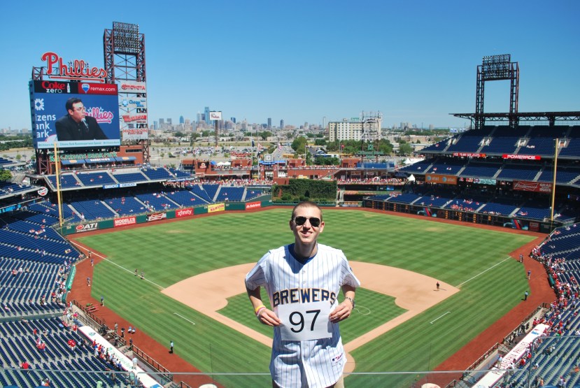 After the walk-off win by the Phillies I was walking through the concourse towards the left field gate. A Phillies fan was excited and saw me walking towards him and kind of laughed and did this pointing thing at me. That was all fine but when I passed him he tried slapping me on my butt. He must’ve thought I had a very droopy backside because he slapped my hamstring instead. Either way I was not happy. From close range I pointed right at his face and said “Don’t touch me.” There may have been a few expletives but that report has not been confirmed. He got up close and said “What are you going to do about it?” Nothing (obviously), so I repeated my original statement and walked away. Seeing that I had witnessed back-to-back-to-back 7-6 horrendous losses I’m surprised I didn’t try to do something about it. Besides that one interaction I had no problem with the Phillies fans. I talked with many of them throughout the three game series and my story was well received.
