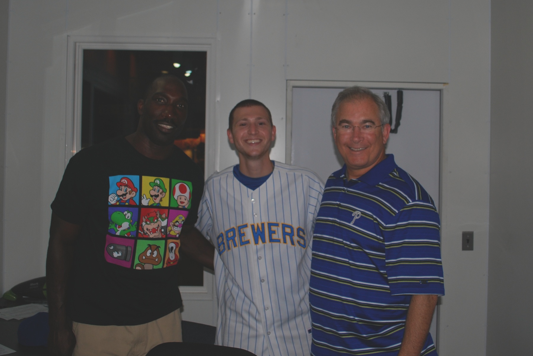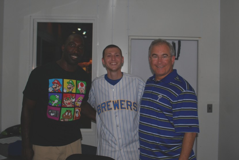 The hosts of the Mike & Ike show are Michael Barkann and Ike Reese. I wonder if they hired the two of them just so they could have the *sweet* pairing of names. Ha. I think my segment was supposed to be about five minutes. However, the Phillies had signed one of their starting pitchers to an expensive long term deal and a reporter who calls into the show sometimes to inform the guys of newsworthy stories called in during my interview. What he had to say was (how do I say this nicely) not really newsworthy. He said he was in the clubhouse and another one of the Phillies’ pitchers, Roy Halladay, made a comment about the contract and how it might the Phillies’ ability to sign/keep players in the future. Mike and Ike didn’t think it required a call into the show and I’d have to agree (but I could be biased seeing that it took up most of my time). I was on air for about two minutes and it was a little frustrating. I skipped getting lunch at one of the famous Cheesesteak places so I could be at the park extra early. Mike and Ike were great and I got a picture with them before I left. Ike’s on the left, Mike’s on the right: