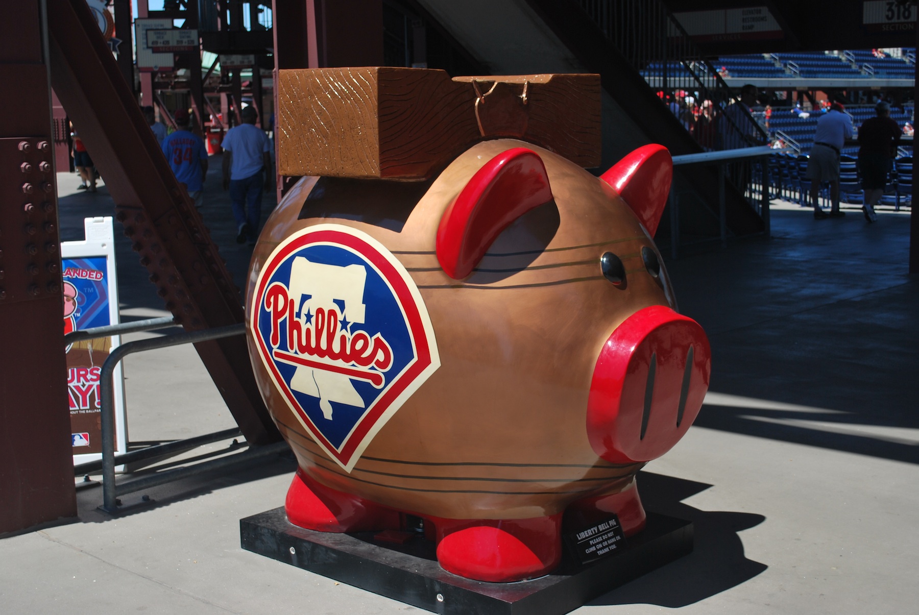 Behind this section in the concourse rests a giant Liberty Bell Piggy Bank. I think every stadium has the piggy banks (with different designs) and the money deposited goes to charity.
