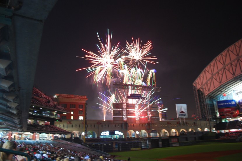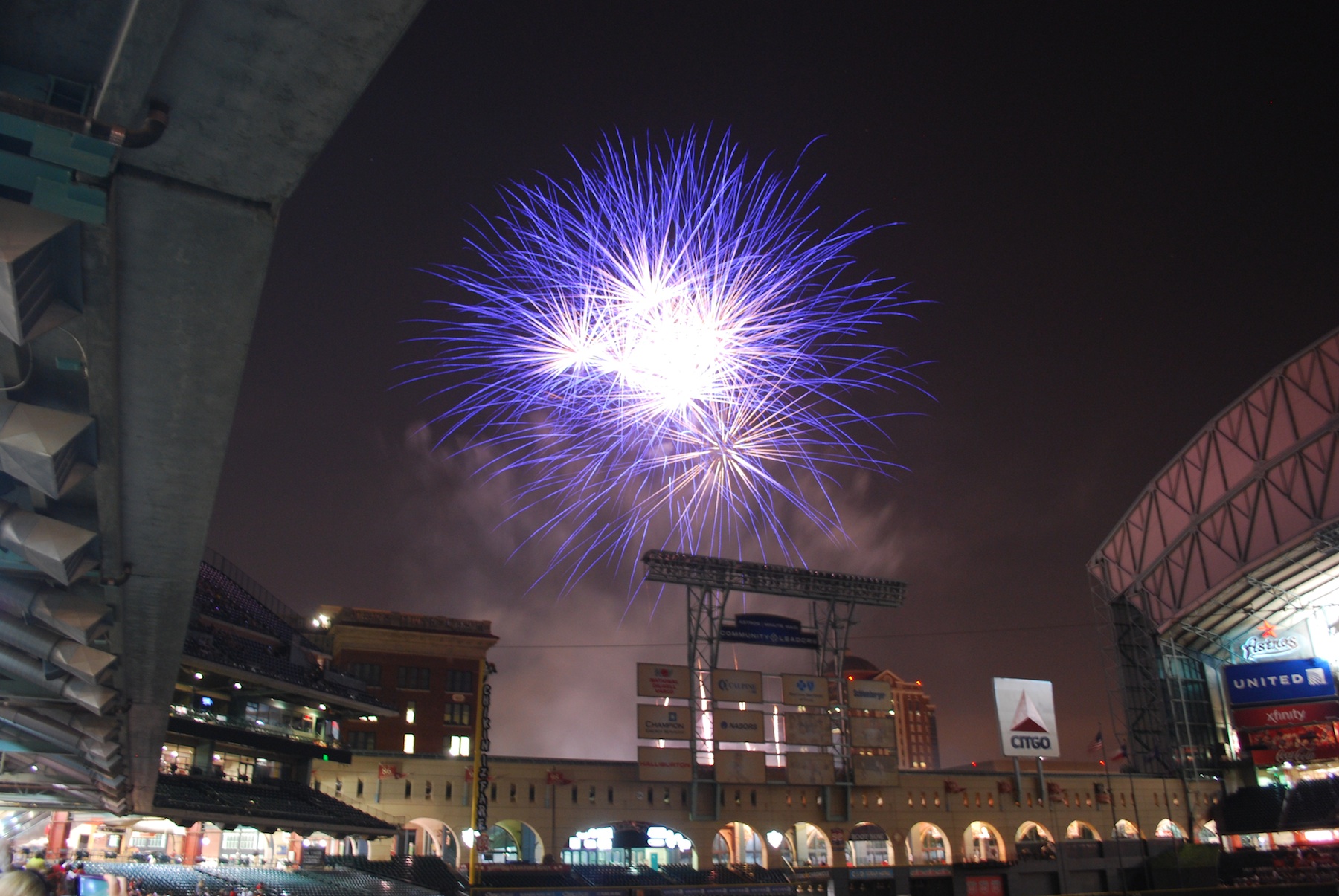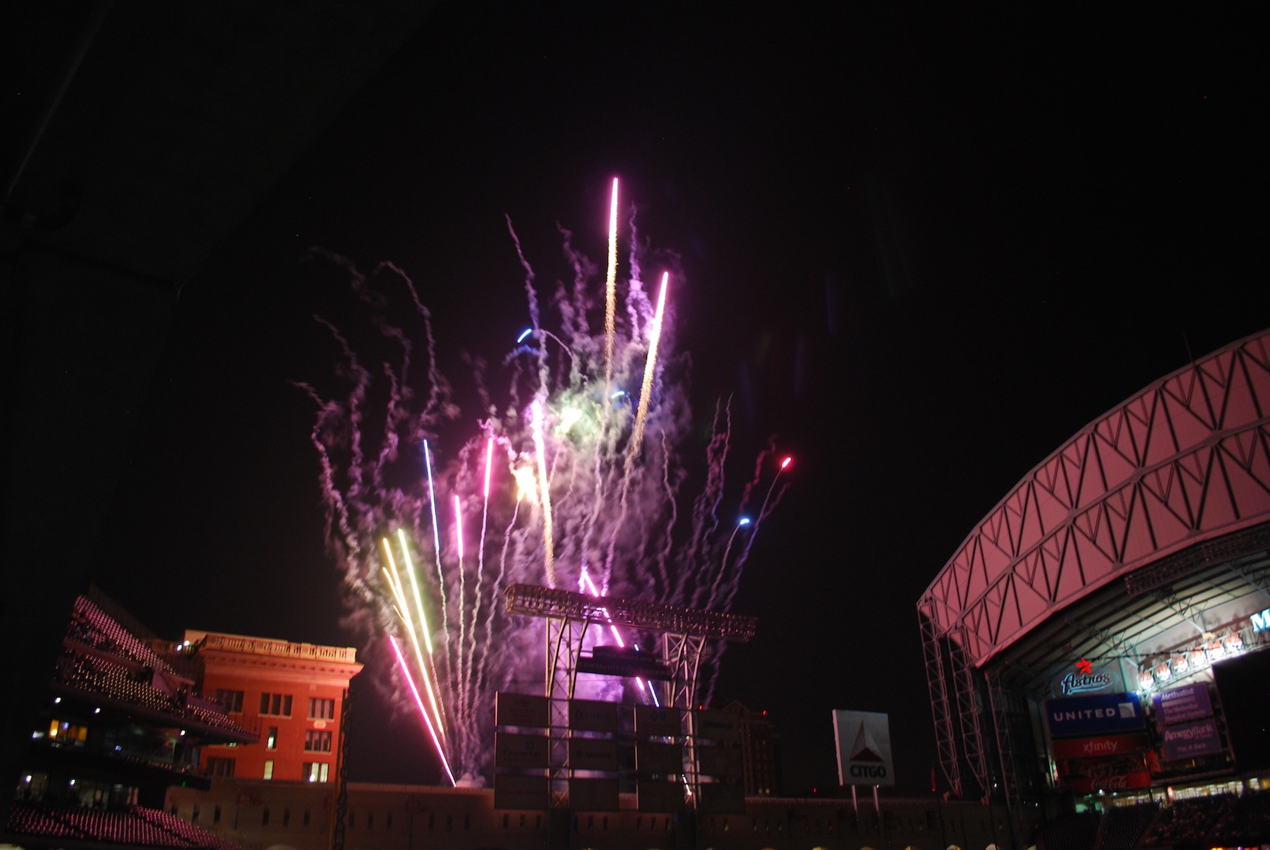 Friday is fireworks night at Minute Maid Park and I stayed for the show, mainly because Annie said she was on her way back into town and could pick me up from the park. They put on a pretty good show and I’m curious how much it costs. Perhaps they should take the money from the 13 fireworks shows they put on throughout the year and sign better baseball players, but I digress. I took pictures of the fireworks, three of them are below.