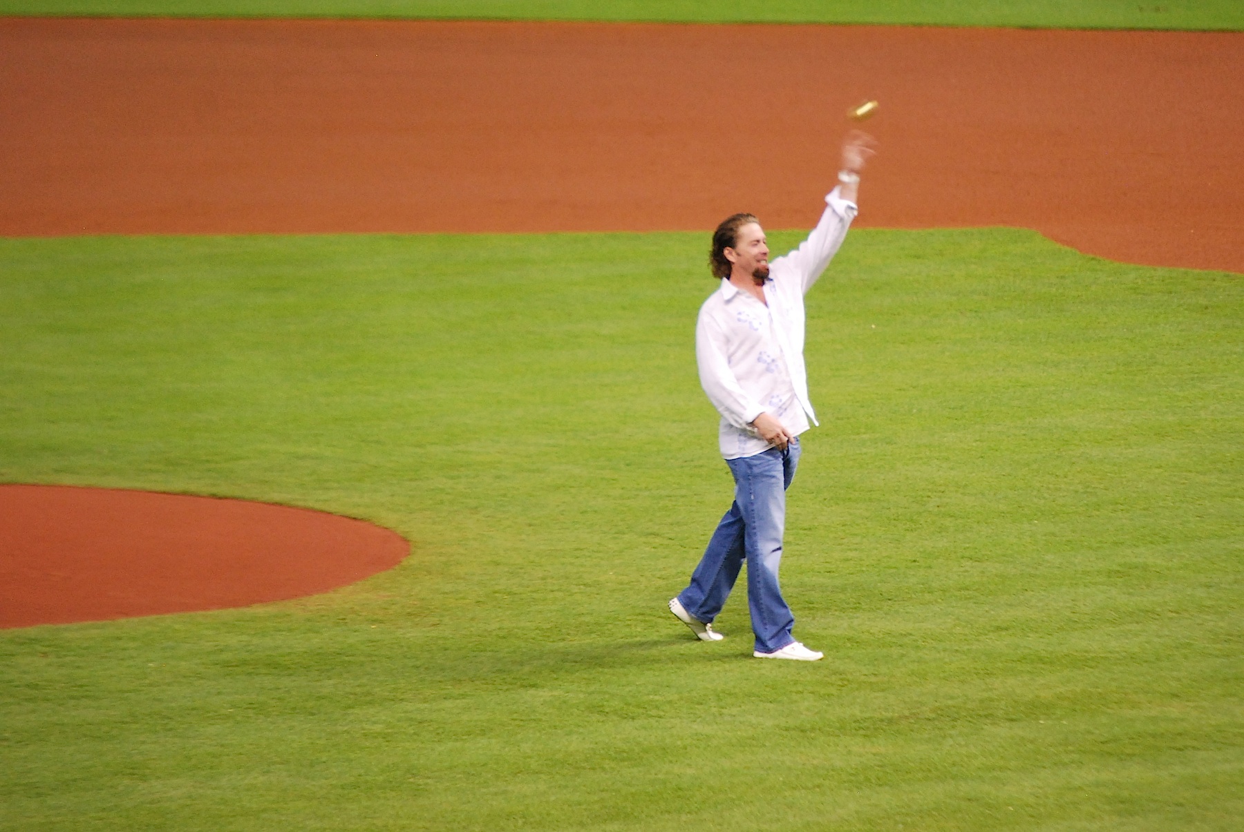 Jeff Bagwell threw out one of the ceremonial first pitches on Friday. Bagwell played for the Astros from 1991 to 2005 and is the franchise leader in home runs, RBI, walks, and batting average. Apparently his shoulder is blown out, which explains why he didn’t throw from the mound.