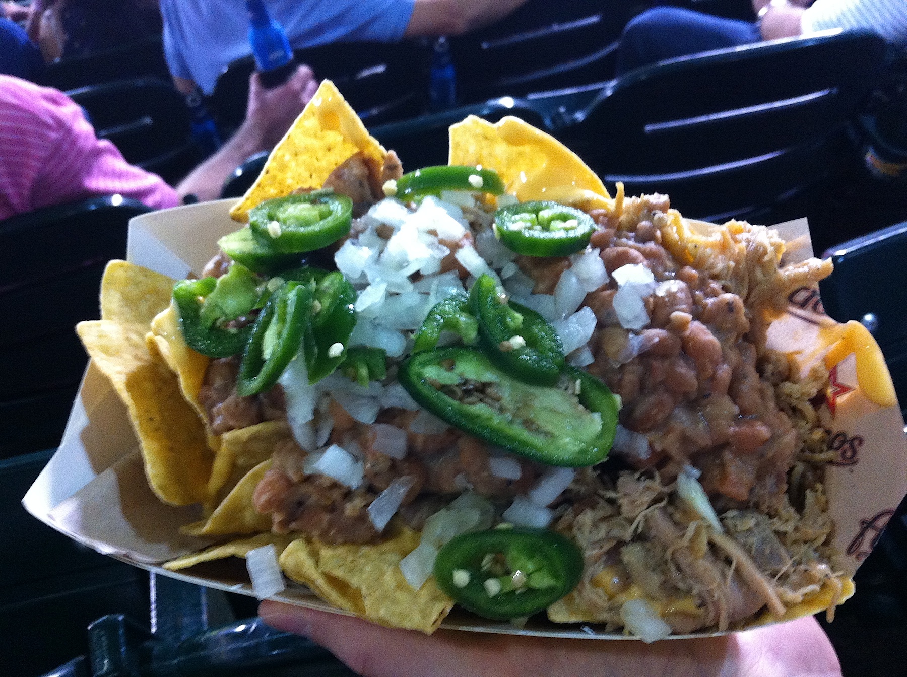Spectacular (if you’re an Astros fan). Ugh. I can’t say I’m surprised though and I’m getting used to it. Final Score: Astros 4 – Brewers 3. The highlight of the game (besides Rickie Weeks hitting three scorching doubles) was the chicken nachos I had in the 6th inning. I’m a little upset though, because one of the main reasons I got them was for the pico de gallo that they put on top. I didn’t find out that the pico was gone until after I ordered and they were in the process of adding the toppings.