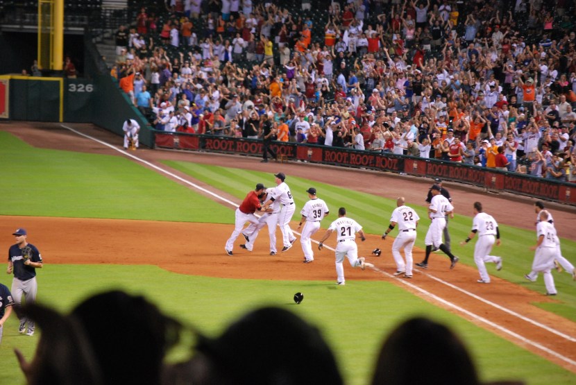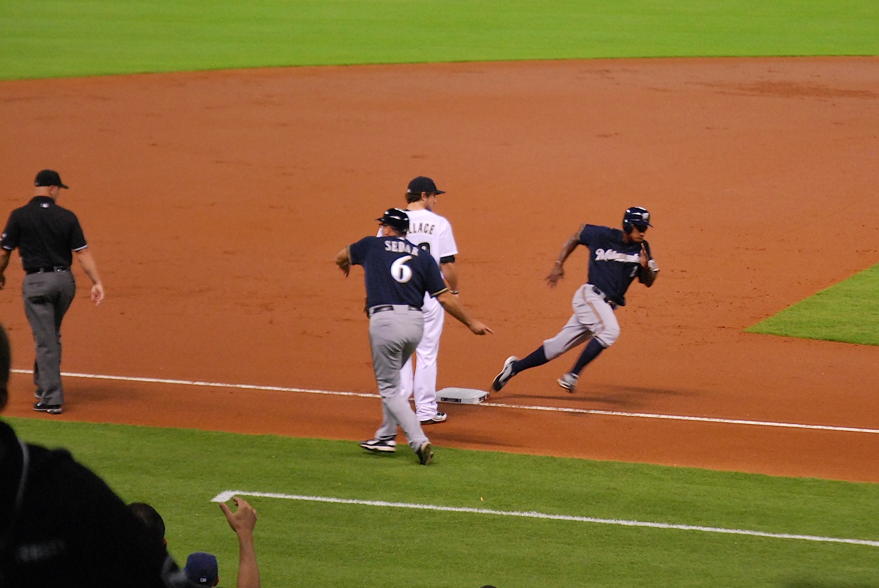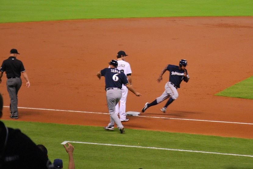 The game started at 7:05 and the Brewers got on the board early. After a Gomez strike out Morgan did the same but the catcher couldn’t corral the pitch in the dirt. When Morgan started running towards first he accidentally clipped the ball with his foot and it didn’t roll the direction the catcher expected. Morgan was able to reach first, much to the dismay of Astros manager Brad Mills who came out to argue once again. Braun doubled on the first pitch he saw and Nyjer Morgan raced home to give the Brewers a 1-0 lead.