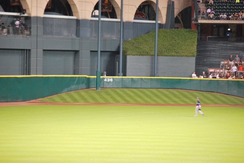 I’ve posted about Minute Maid Park five times before today and have failed to mention Tal’s Hill, I think. I didn’t read my previous five posts but doing a quick google search with my name and Tal’s Hill nothing came back. Tal’s Hill is an elevated patch of grass in centerfield at Minute Maid Park. Its entire footprint would be beyond the centerfield fence in most ballparks in the majors. The 436 centerfield fence is the deepest centerfield in the majors.