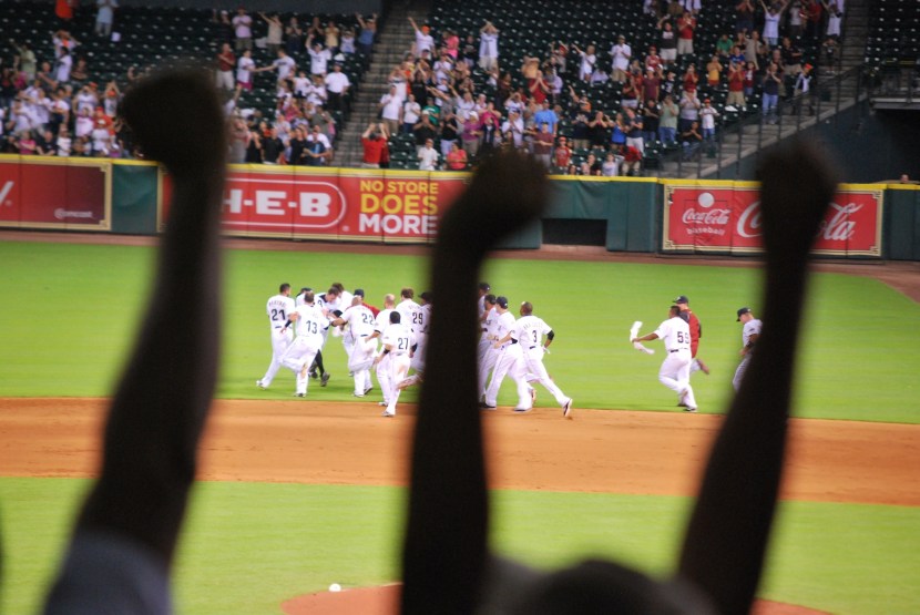 Before the game the Astros had a short on-field ceremony for the Lone Star Santas. They’re an organization who help with disaster relief for children. In 2011 they delivered toys to Joplin, Missouri after a tornado struck the town in May.