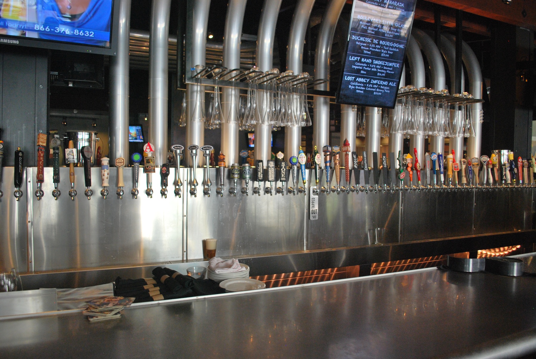 We took the free bus down a few stops and got off so we could eat at Yard House. It’s connected to the Sheraton and they had over 115 beers on tap when we were there. It varies, sometimes there will be more, sometimes less. These were just some of them, the bar was oval, and the taps circled the bar.