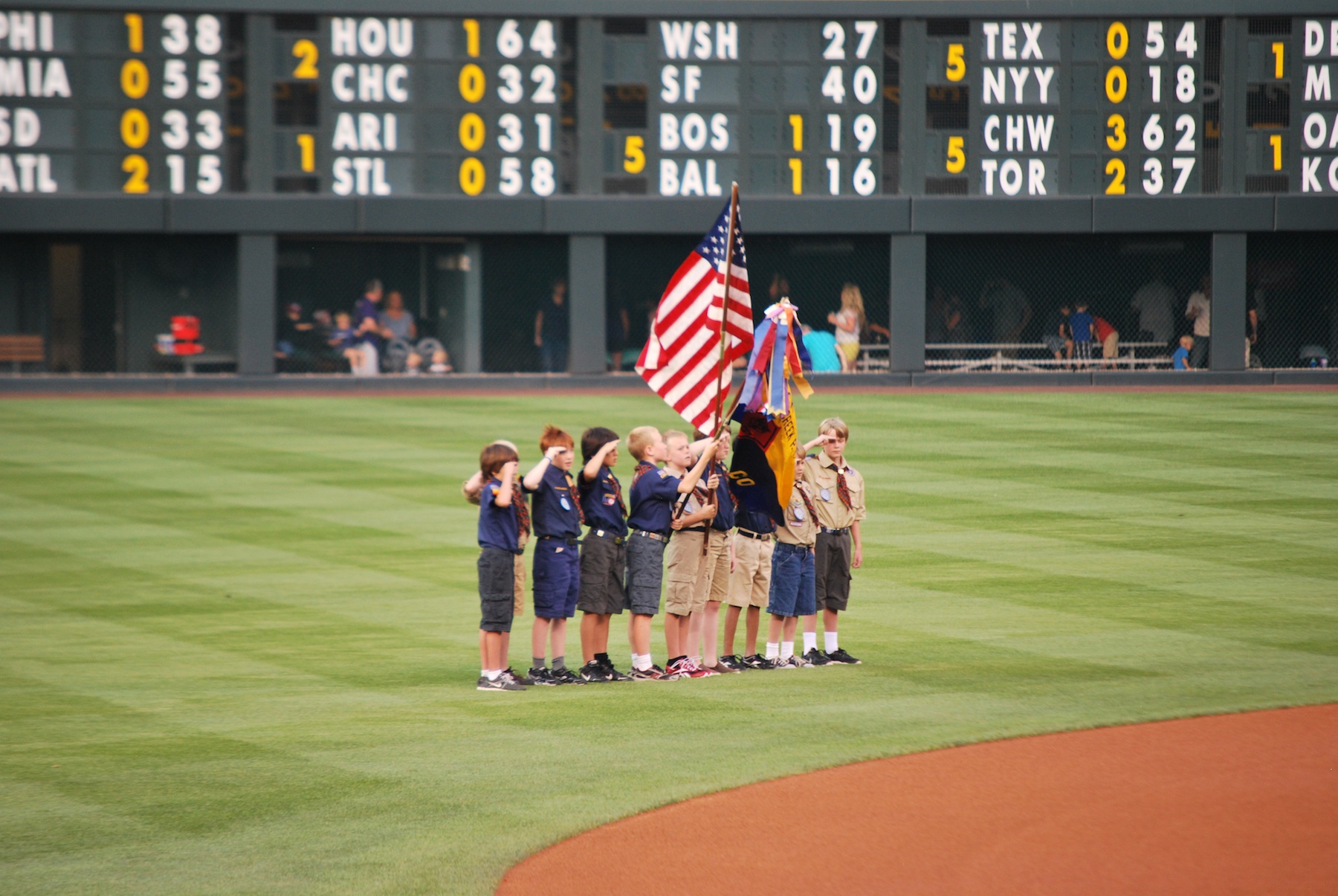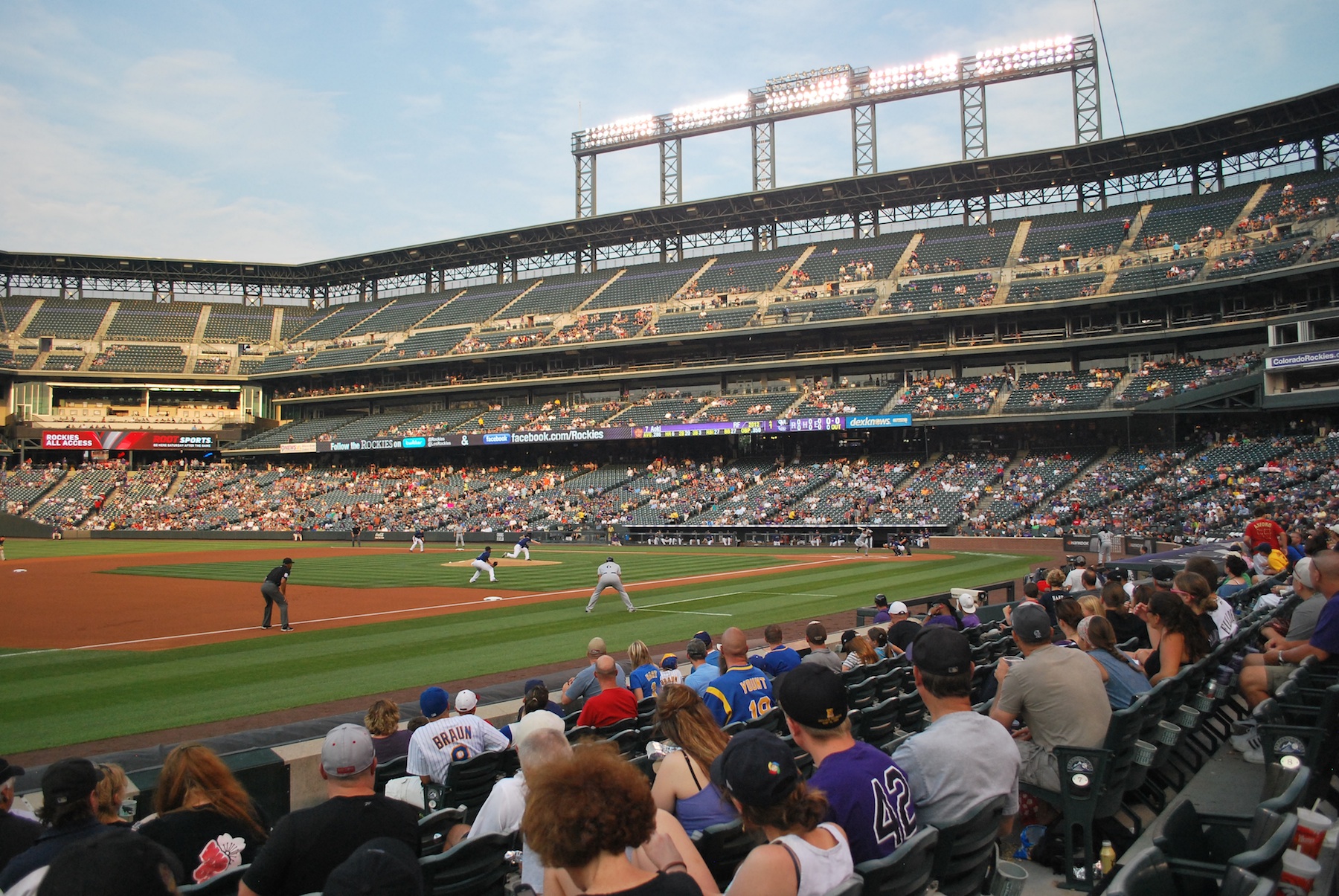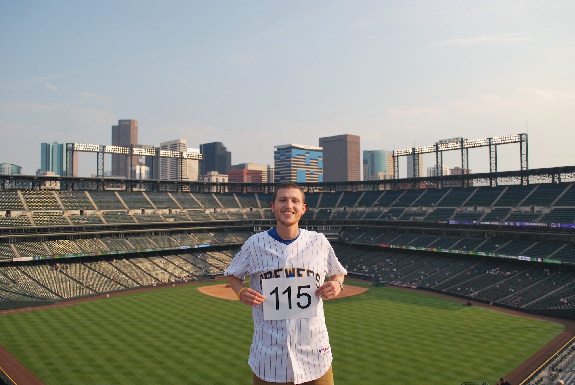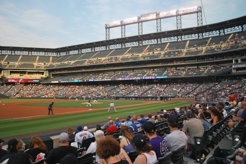 We hopped back on the free bus and took it to Market Street, where we got off and walked to Coors Field. We got to the park at around 5:35 and once inside we went to the Rock Pile seats way out in center field. It provided a great spot for game photo number 115.