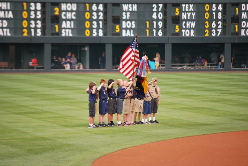 Some school children sang the national anthem and some Boy Scouts presented the flags.
