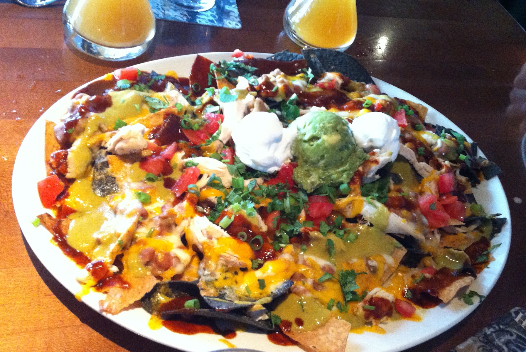 We were there during happy hour and Yard House offers half-price appetizers. We got the Chicken nachos, which consisted of chicken, spicy pinto beans, cheddar and jack cheeses, red and green sauce, tomato, cilantro, onions, guacamole and sour cream.