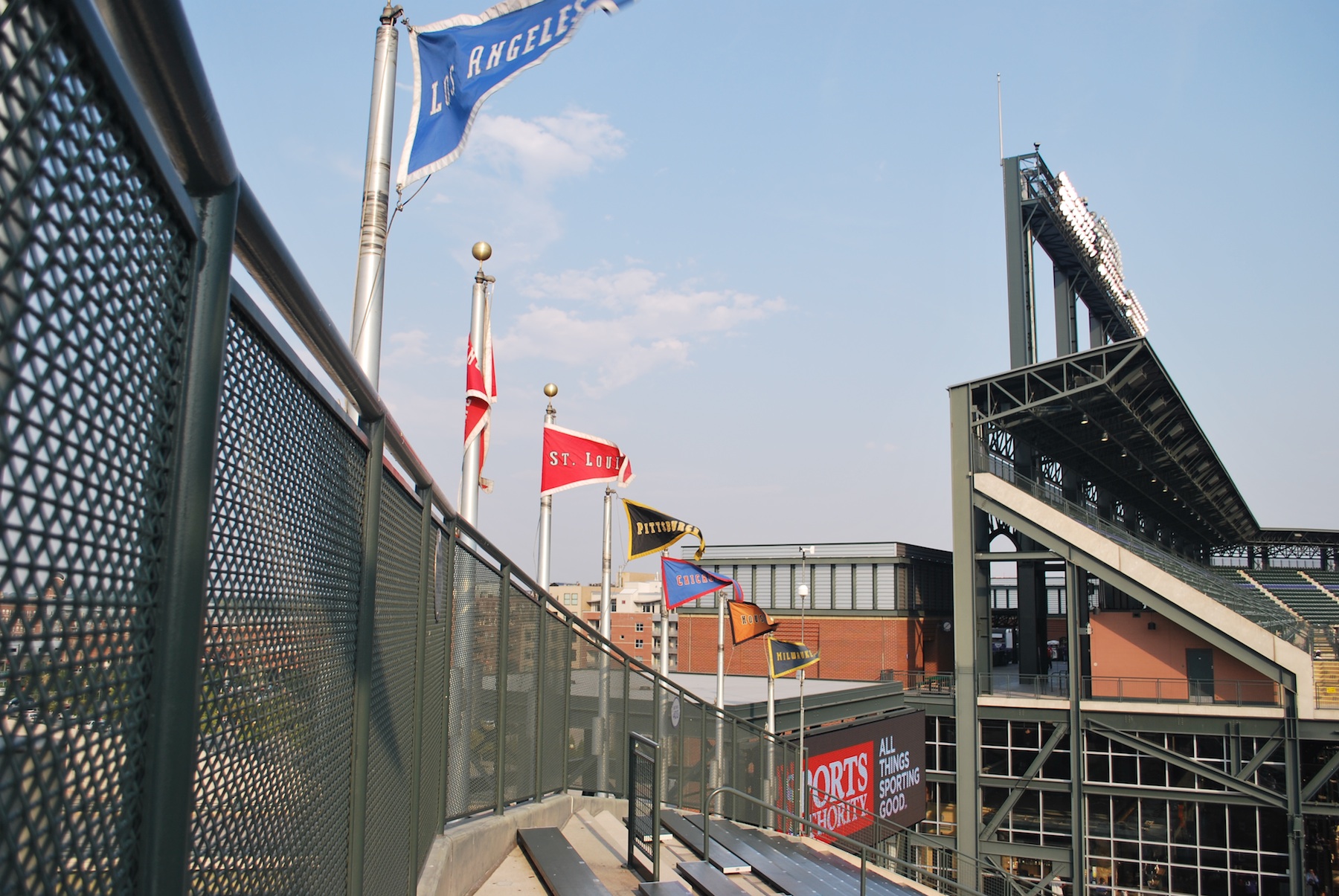 Beyond the last row they have pennants for each National League team. This was one side of the Rock Pile seats. The only flag that was missing was the Rockies’. I’m assuming a drunk fan thought it would make a nice addition at their house, so they reached over, lowered it, and took it with them.
