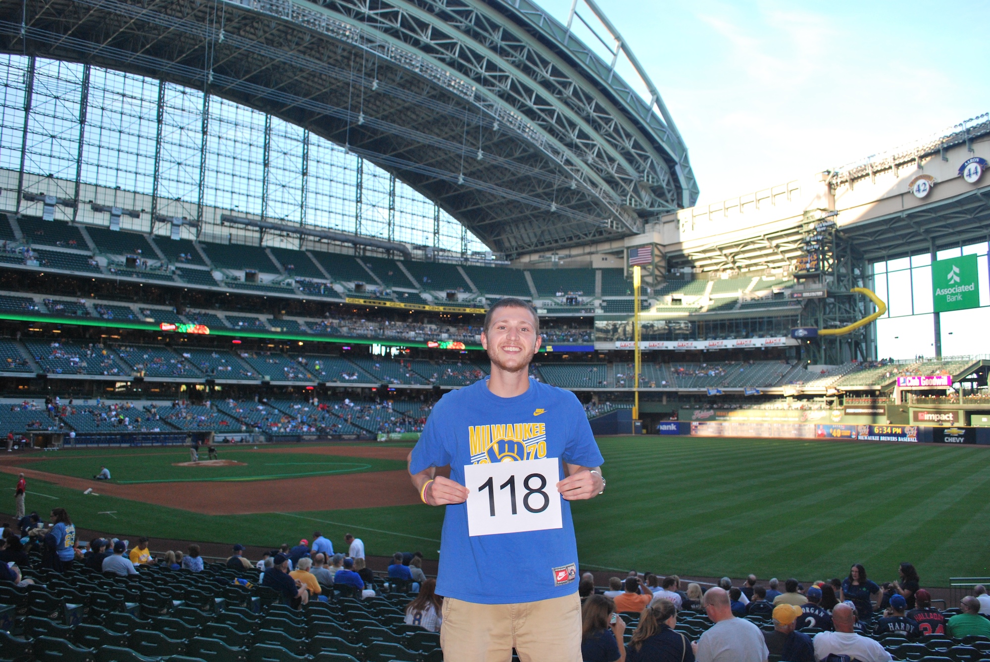 At halftime (between the top and bottom of the 5th) I had the lady behind us take a picture of me and Dani. Dani went to school at UW-Oshkosh and played on the softball team. Small world: Dani was a catcher on the team while Annie, who hosted me in Houston, was a pitcher during her year at Oshkosh. Dani donated $40 to Be The Match for her seat, and I’m very grateful. Over $1,000 of the funds raised has come from people joining me at games and donating to the cause. Thanks Dani! And thanks to everyone who has joined the registry or made a donation, everything helps!