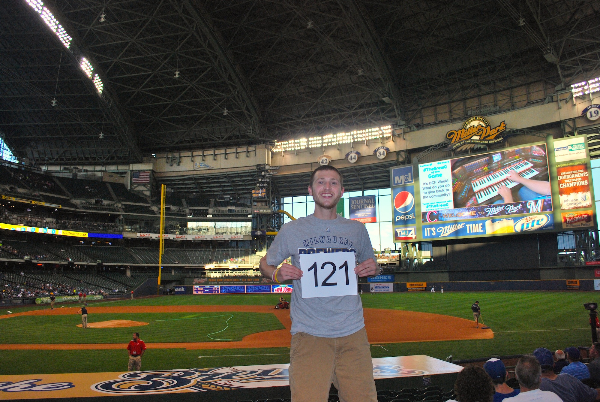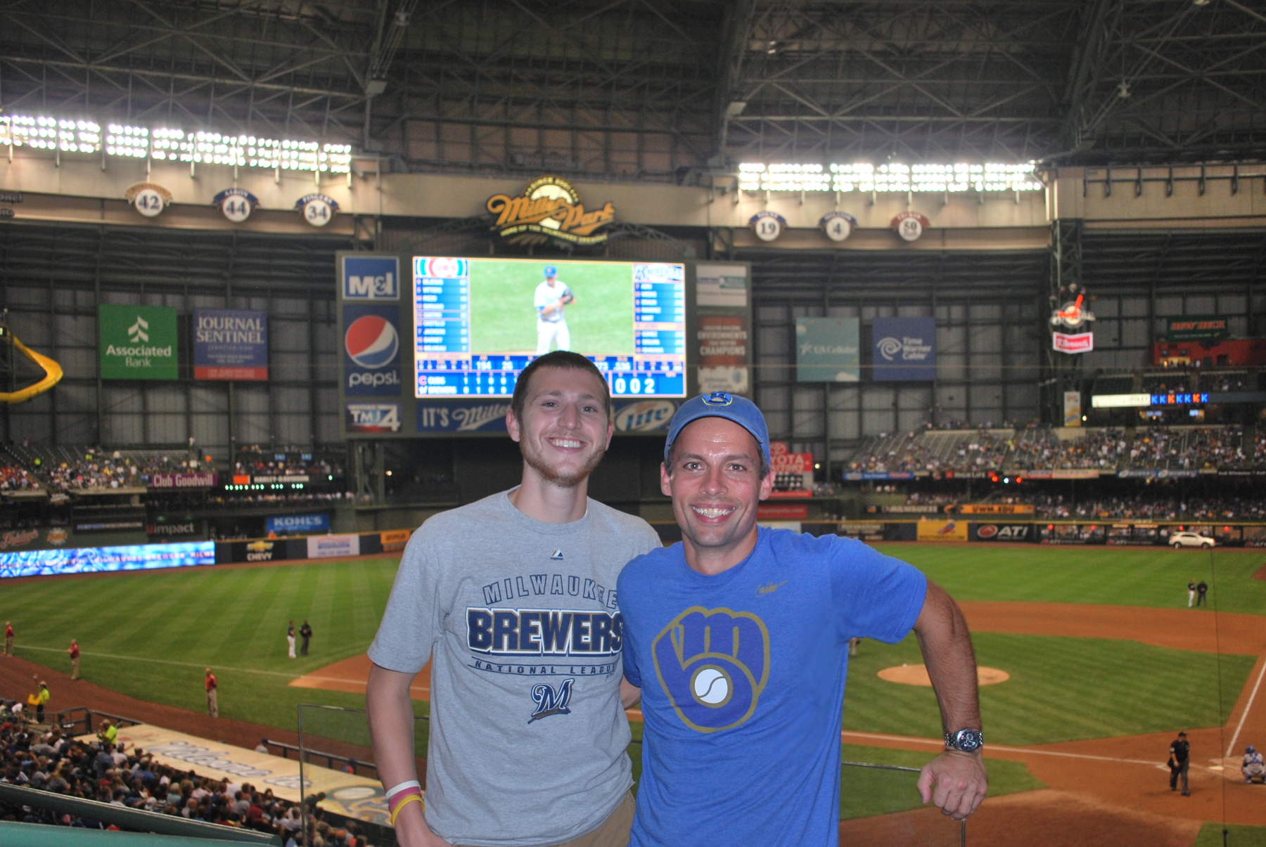 It wasn’t a grand slam like Thursday, but it was a 2-run single and the Brewers had a 5-3 lead. The Cubs’ starter, Justin Germano, got the hook, and while the pitching change went down I had a fan a few rows in front of us take a picture of me and Adam. He donated $50 to Be The Match for his ticket which brings us close to $3,500 raised so far. Thanks Adam! And thank you everyone for your donations and your support.