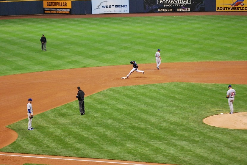 In the 5th inning the Cubs increased their lead back to two runs. The Brewers had an answer in the bottom of the 5th, eight answers to be exact. Eleven batters came to the plate in the 5th. Technically 9 different batters as two of them batted twice. Gomez led off with a single and scored on a one-out Travis Ishikawa base hit. Aoki drove in Ishikawa with a sacrifice fly and there were now two outs and no one on base. Weeks and Braun both singled and Ramirez walked, loading the bases for Corey Hart.