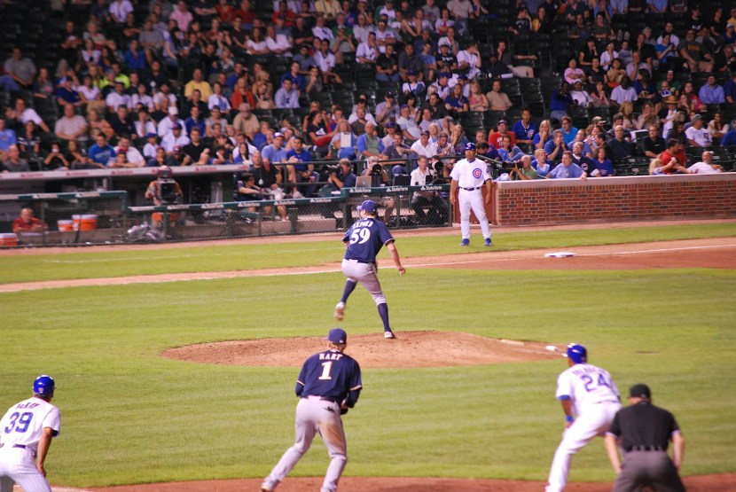 The Cubs tied it in the bottom of the 2nd when Barney drove in LaHair with a groundout of his own. The game remained tied as it entered the 7th inning. Nyjer Morgan bunted for a base hit with one out and went to second on a throwing error by Samardzija. Segura singled home Morgan to give the Brewers a 2-1 lead.