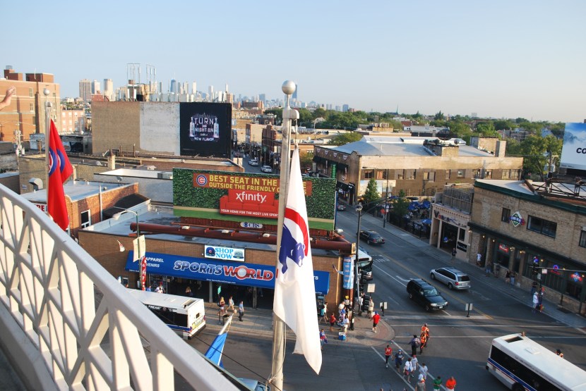 We walked around and went out on the patio behind home plate in the upper deck. This was taken looking down Clark street towards the loop.