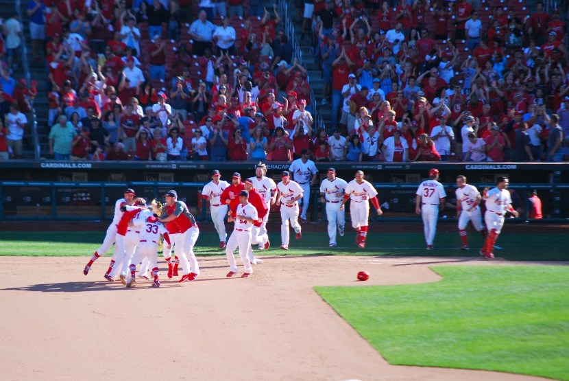 The Cardinals failed to score in the 9th and the game went to extras. Travis Ishikawa singled with two outs in the 10th and was pinch run for by Eric Farris, who is a recent September call-up. Farris stole second and put himself in scoring position.