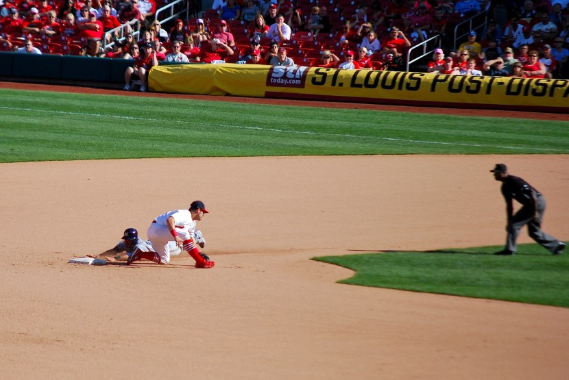 A wild pitch from Kelly in the top of the 2nd allowed Corey Hart to score and the game was now 3-1. The bottom of the second saw the Cardinals get that run right back when Matt Carpenter doubled home Kelly. In the top of the 4th Jean Segura batted with runners on first and second and two outs. The first pitch he saw was weakly hit to center but just out of the reach of the second baseman.
