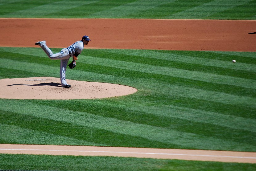 The Brewers failed to score in the 1st despite the leadoff double which was a problem all game. As a team the Brewers were 2 for 14 with runners in scoring position. In the bottom of the 1st the Cardinals scored three runs. Two on a home run from Matt Holliday and the other on a home run from Carlos Beltrán. Marcum was on the mound and here he is after letting go of a pitch in the 1st inning: