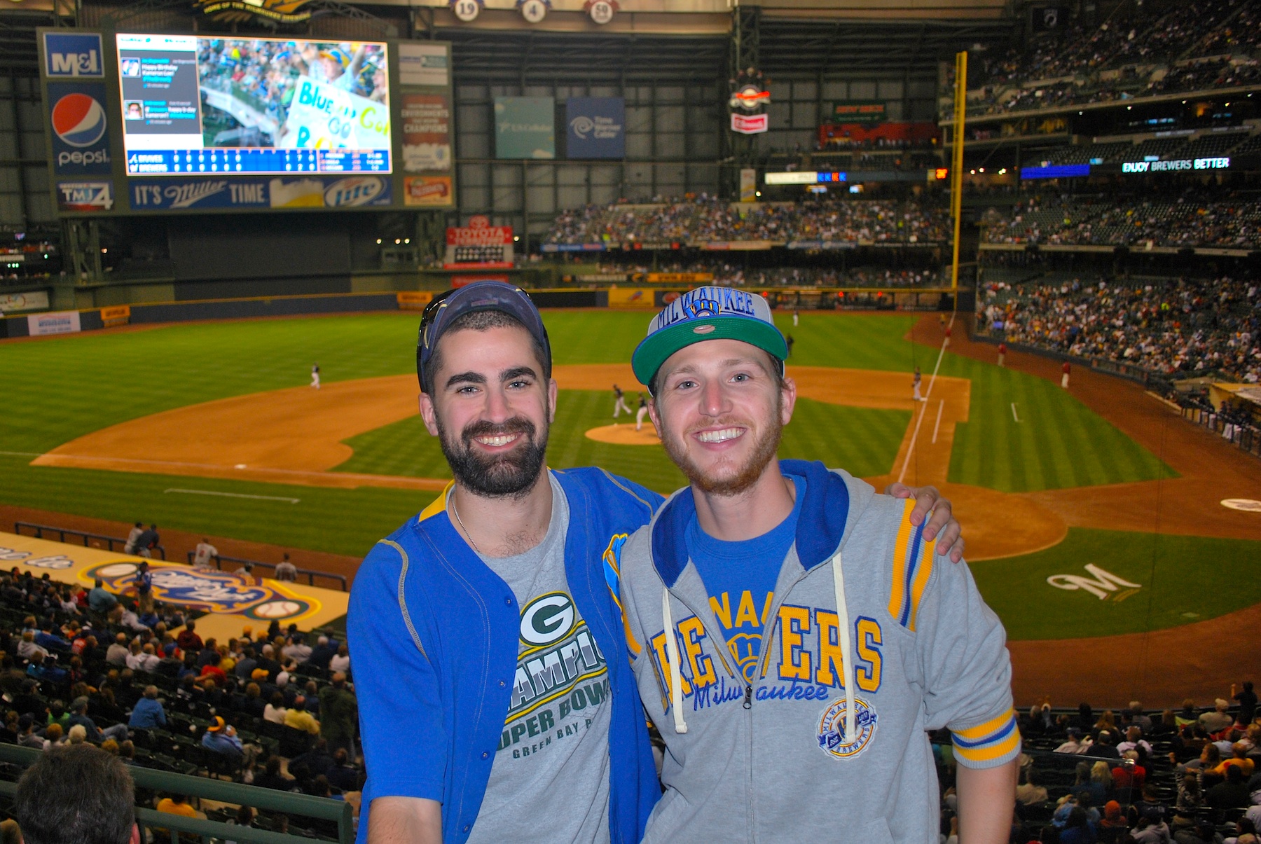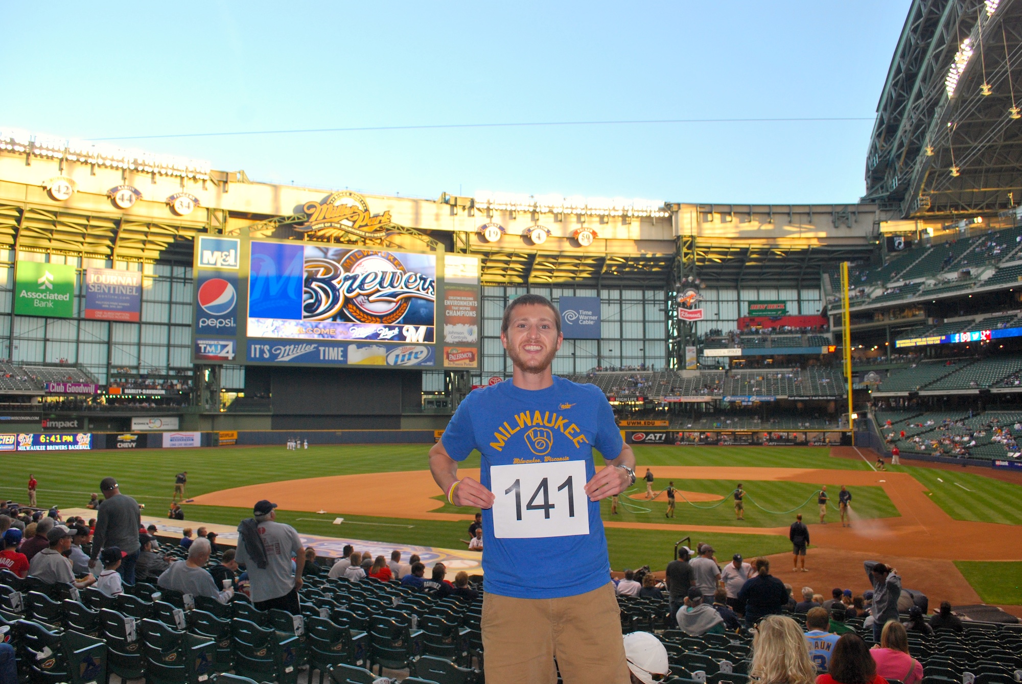Joel was my twitter follower who joined me at Monday’s game, and this was his first trip to Miller Park since opening day. He had been in Connecticut for an internship but was now back in Milwaukee to finish up school. Joel was waiting in our seats by the time I got there at 6:55. He made a $40 donation to Be The Match for his ticket. Thanks Joel!