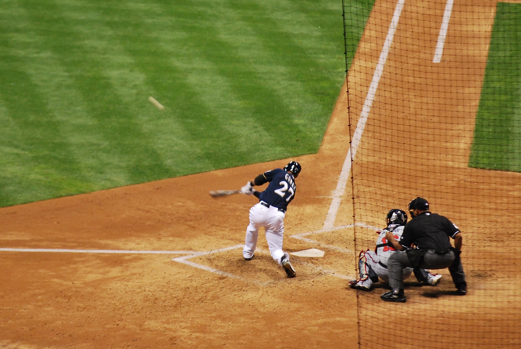 Gomez was next up and despite getting down 0-2 in the count he was able work it full and hit the 7th pitch of the at bat to centerfield for a sacrifice fly.