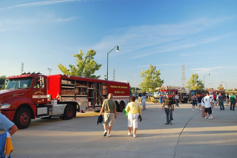 They had a bunch of fire trucks at the park on Tuesday to help remember the first responders who saved lives and lost their own on 9/11 (and to honor those who currently serve). There were a lot more than what are pictured below (I should’ve counted, I did not).