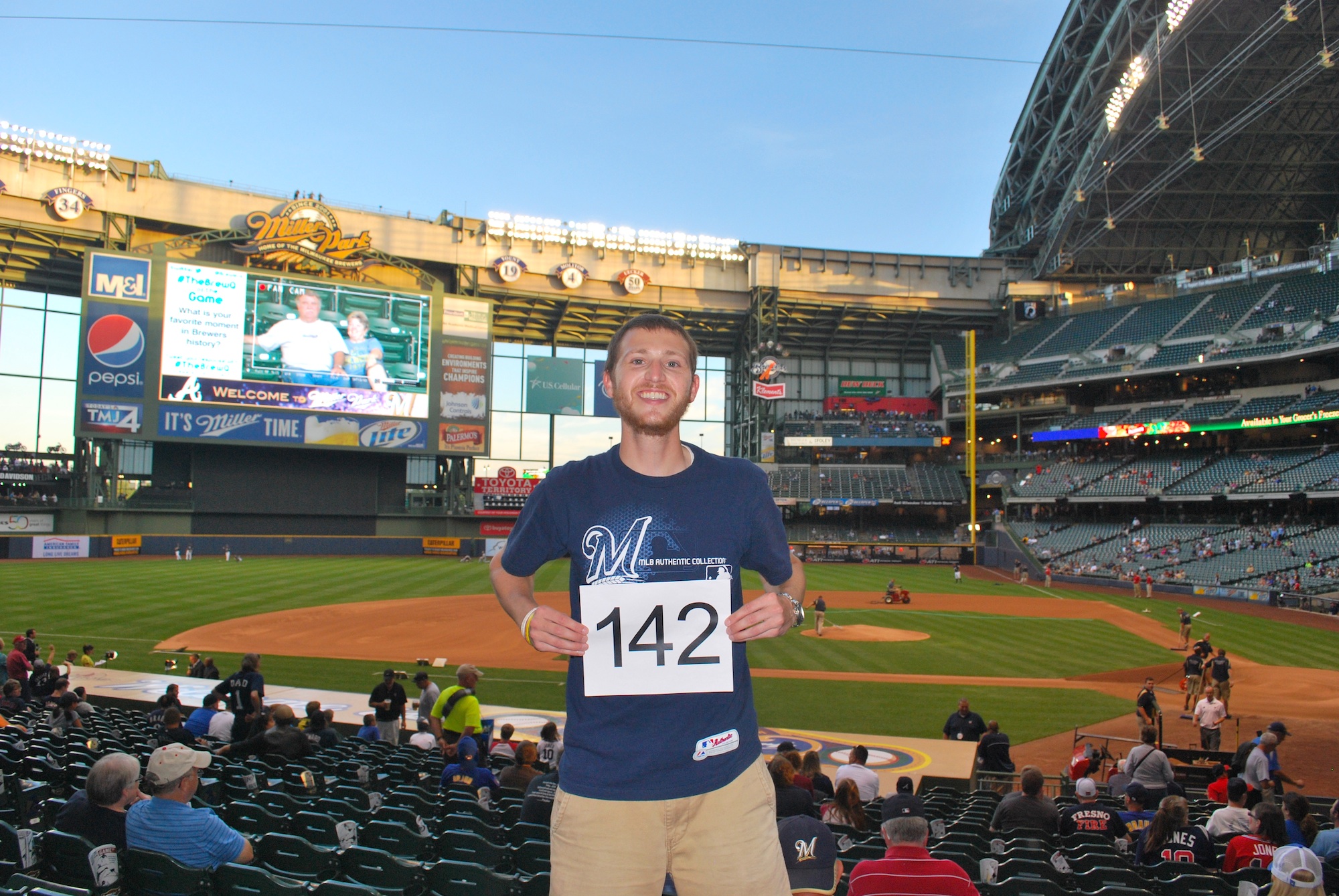 I went inside at 6:30 and headed to section 121 for game photo number 142. My friend Jason, who has taken a few of the game number pictures for me (including Monday) stopped by again to help me out.