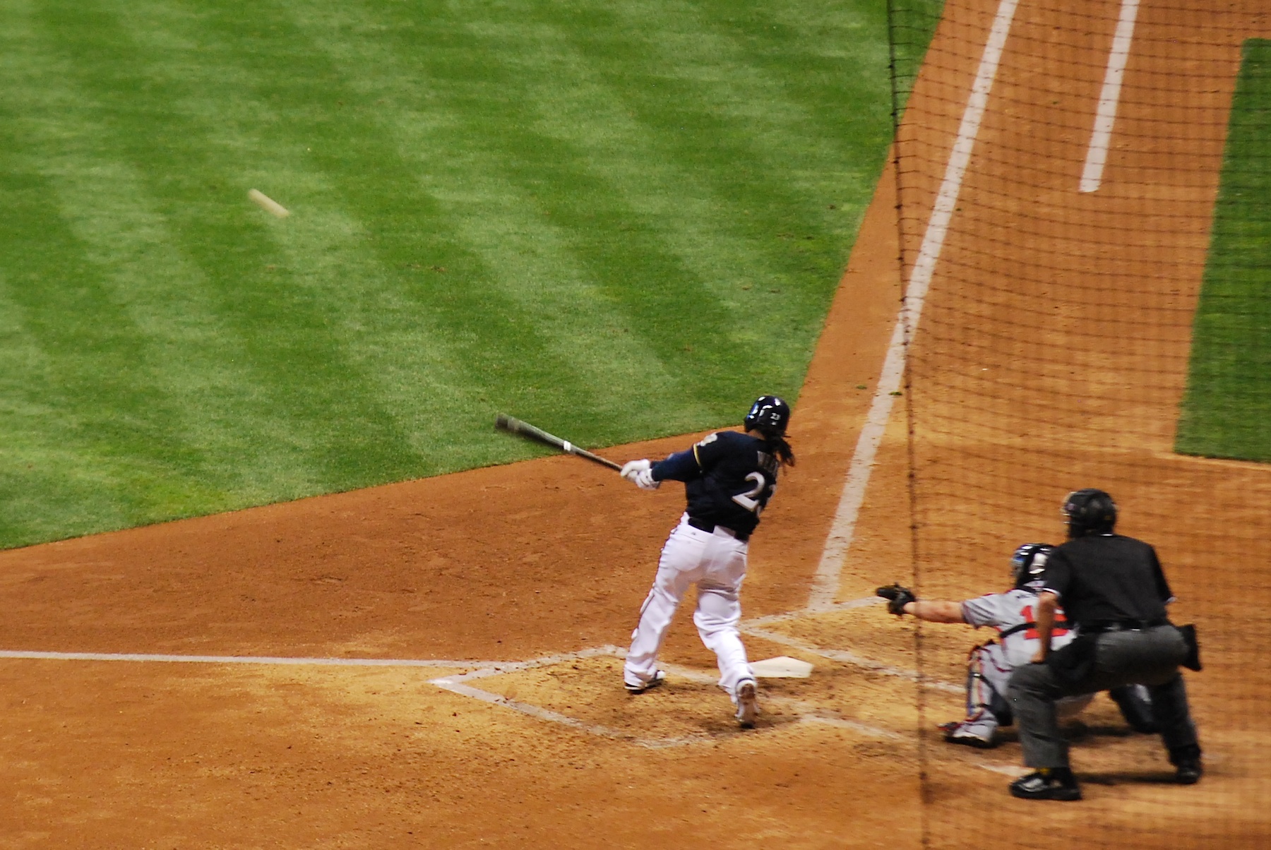 The game went quickly after that. Between the two teams 31 of the next 36 batters were retired. That brings us to Rickie Weeks batting in the bottom of the 6th. On the 2-2 pitch Weeks sent one to right center and deep.