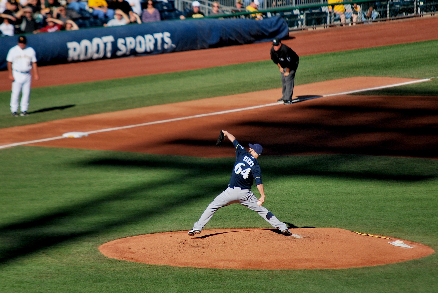 Mike Fiers was on the hill for the Brewers and didn’t give up a run through the first two innings. Here he is pitching in the first: