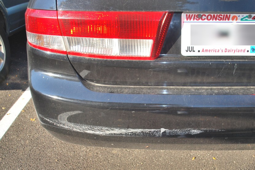 My car still ran/runs fine and I made it to my uncle Jon and aunt Candy’s townhouse just before 12:30 AM. I went out and inspected the damage in daylight and it really isn’t *that* bad. I’m surprised because my neck is a little sore from when I hit the guard rail and my elbow is even more sore than it has been the past 2 months. I will be getting a new license plate holder (and license plate if no one finds it and returns it), but I don’t think a new bumper is worth it. I’ve tried to be as careful as I can all season (and driving in general) because spending money on preventable accidents is a waste of money. I also think I’ll leave it to remind me of how stupid I am. I know PETA will be happy with my decision to swerve (since no one was injured in the end) but honestly I think I would’ve been fine if I had just hit the darn thing. It was decently sized so who knows what would have happened, but swerving at 65 MPH is typically not a good decision. Overall I’m thankful that I’m fine and I understand it could’ve been a lot worse.