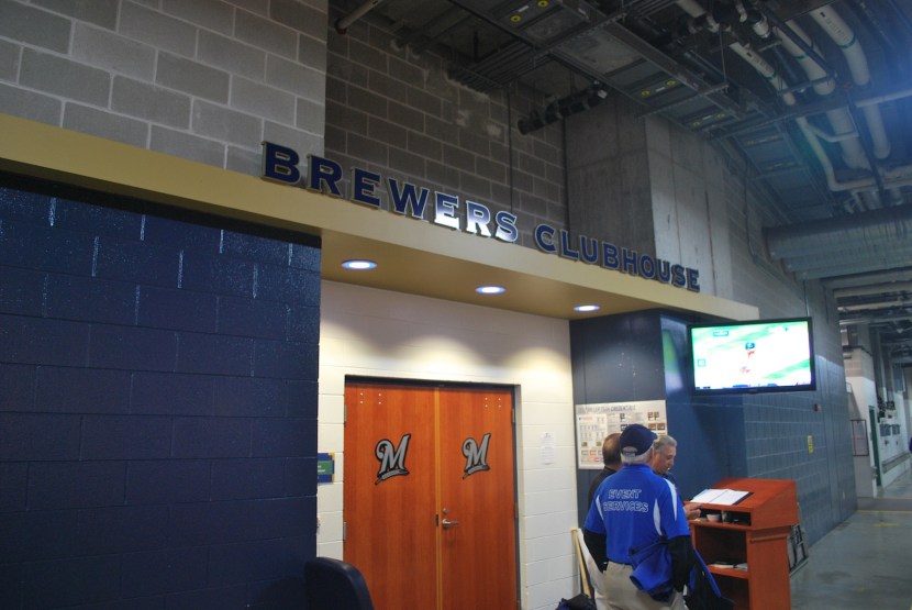 Along the service tunnel we went, passing the Brewers Clubhouse on the way. Since the Brewers were in there we couldn’t have a look around, but it was all good. I had gotten a tour from Larry Hisle in 2009 and got to see the clubhouse briefly. I remember Trevor Hoffman being the only one in there, just chilling on a couch watching TV.