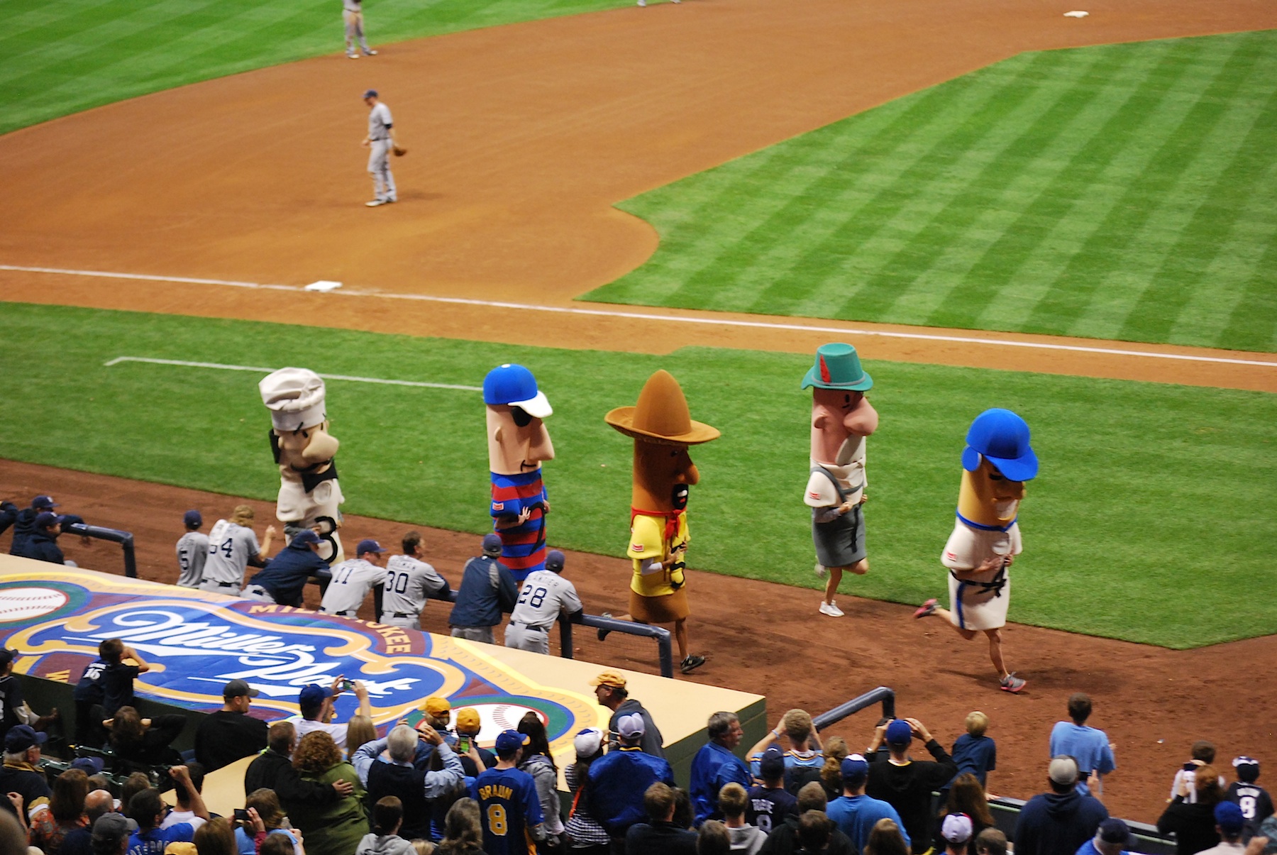 The Padres slowly chipped away, scoring their first run in the 4th and then adding two more in each of the 5th and 6th innings. In the middle of the 6th the final sausage race of 2012 was run. I incorrectly chose Polish, even though I had wanted to select hot dog but Victoria beat me to it.