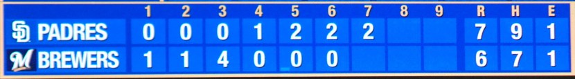 In the top of the 7th the Padres scored two more times and I didn’t like the score.