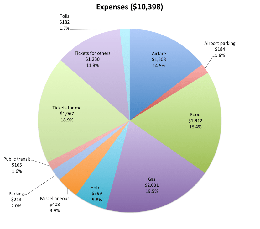 I kept detailed notes on the money I spent throughout the season. The Brewers did provide a per diem, so the amount displayed below does NOT take that into consideration. So for you technical folk, the below includes my expenses but not my income. You may be wondering how I spent $1,280 on “tickets for others.” I had paid in full for a 20 game pack with the left over money from the unused World Series tickets. The Brewers upgraded me to a full season package so in effect I paid for a 20 game pack but got a season’s worth of games. That accounts for $640 of each tickets for me and tickets for others. Since I couldn’t sell my tickets for profit I sold them for donations to Be The Match. The Brewers were fine with this. The other $600 comes mostly from the first St. Louis series, where I splurged and bought nice seats for me and Victoria. Miscellaneous expenses include money spent on 50/50 raffle tickets ($158 for one ticket every home game, save 2).