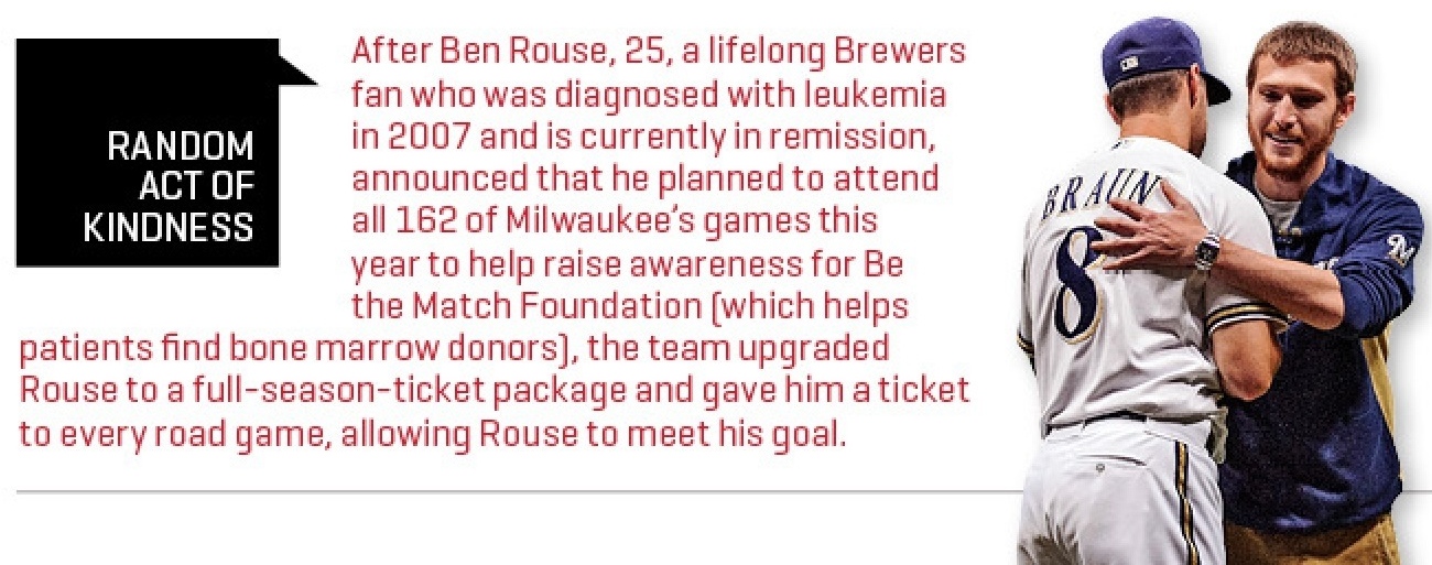 First off: I would like to thank everyone who has supported me throughout the season and made this goal of mine more attainable. I’d like to thank the Brewers as an organization for helping out and making this mission much easier on the pocketbook. While I was prepared to pay for everything on my own their assistance made it a heck of a lot easier to not fret about paying $1.33 for one banana at an airport. With their backing I was also able to reach a lot more people to help promote Be The Match. Kathy Schwab and Tyler Barnes deserve a lot of credit for convincing other people in the organization to jump aboard the Mission 162 bandwagon. Thanks to Jill and Nathan within the merchandising department. They helped get me the licensed apparel that the Brewers were providing. Thanks to my season ticket representative, Chris, who worked with other staff members to get my season tickets sorted out and helped me throughout the season.